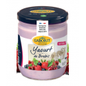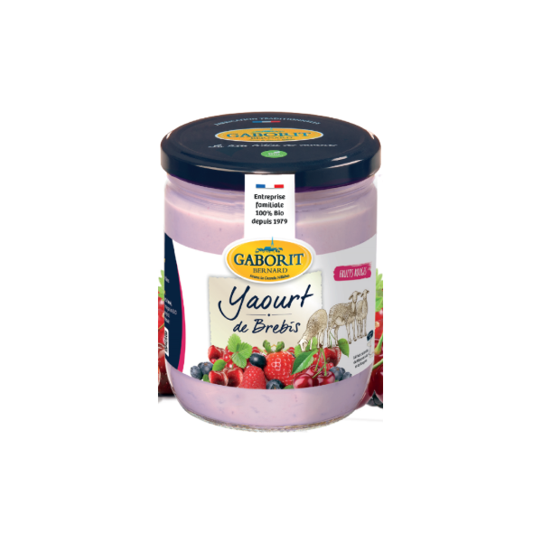 Ingrédients : Lait frais entier de brebis pasteurisé au bain-marie*, 14% préparation de fruits rouges* (20% fraises*, 15% myrtilles*, 12% framboises*, 2% groseilles*, 2% griottes*, sucre de canne blond équitable*), ferments lactiques. *Ingrédients issus de l'agriculture biologique Ingrédients équitables contrôlés Faire for Life (5,86% du total des ingrédients)