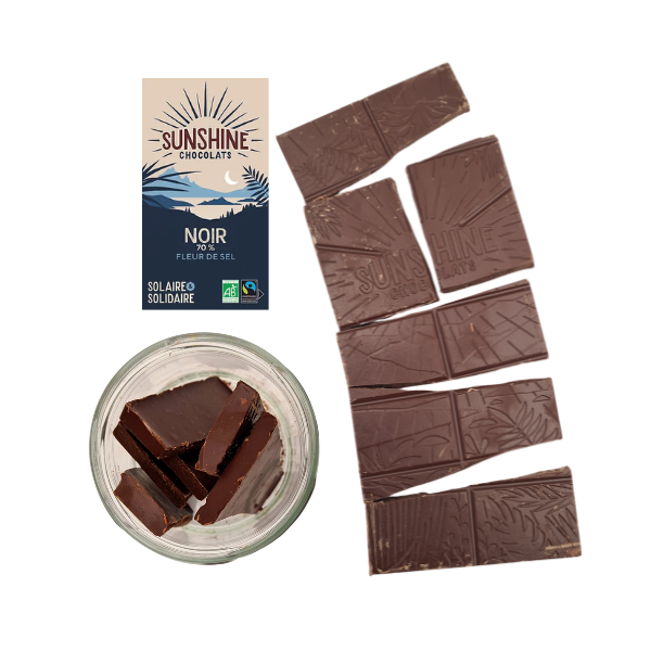Goûtez la fleur de sel née des embruns bretons. Une pointe aromatique minime, mais vivifiante qui fait des merveilles avec le chocolat noir. Tablette BIO et équitable.