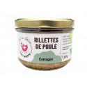 Ingrédients : viande de poule bio 66%, gras de porc bio, sel de Guérande, estragon feuilles bio 0.25%, poivre noir bio, laurier bio.
