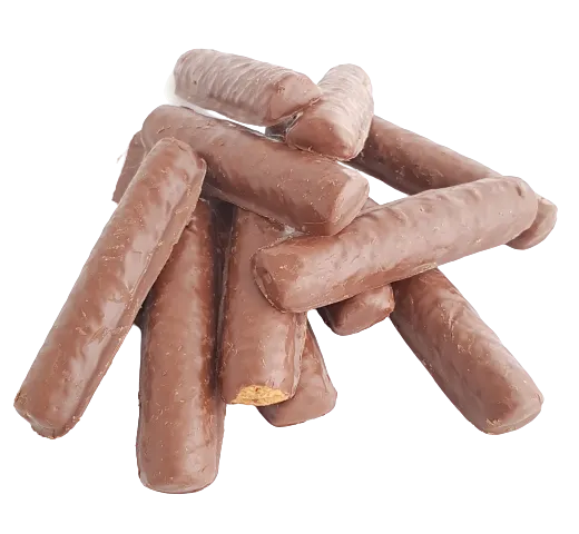 Un bocal de 15-16 délicieux bâtonnets bio enrobés de chocolat au lait.