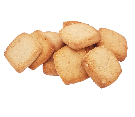 Farine de blé*, sucre roux de canne*, beurre* 19%, amandes* 9,5%, sirop d’orge malté, sel marin, jus de citron concentré* 1,2%, huile essentielle de citron*, arôme naturel*, poudre à lever : carbonates de sodium. *Issus de l’agriculture biologique et du commerce équitable concernant le sucre.