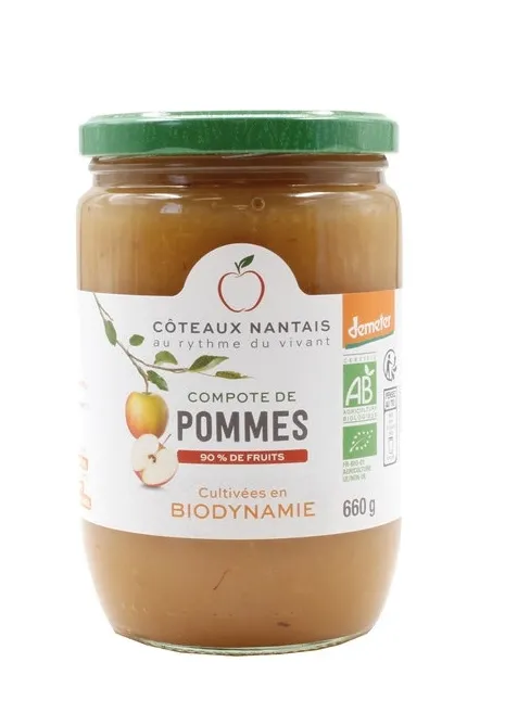 Pommes* (demeter**) 90%, sucre de canne* (demeter**) 10%. * issus de l’agriculture biologique. ** marque des produits issus de l’agriculture biodynamique certifiée.