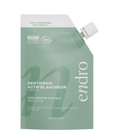 1 recharge (350 g) = 2 recharges complètes de votre flacon, soit l’équivalent de 5 tubes de dentifrice classiques de 70 g.