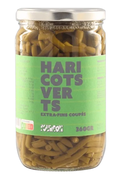 Haricots verts extra-fins coupés, eau, sel de Guérande.