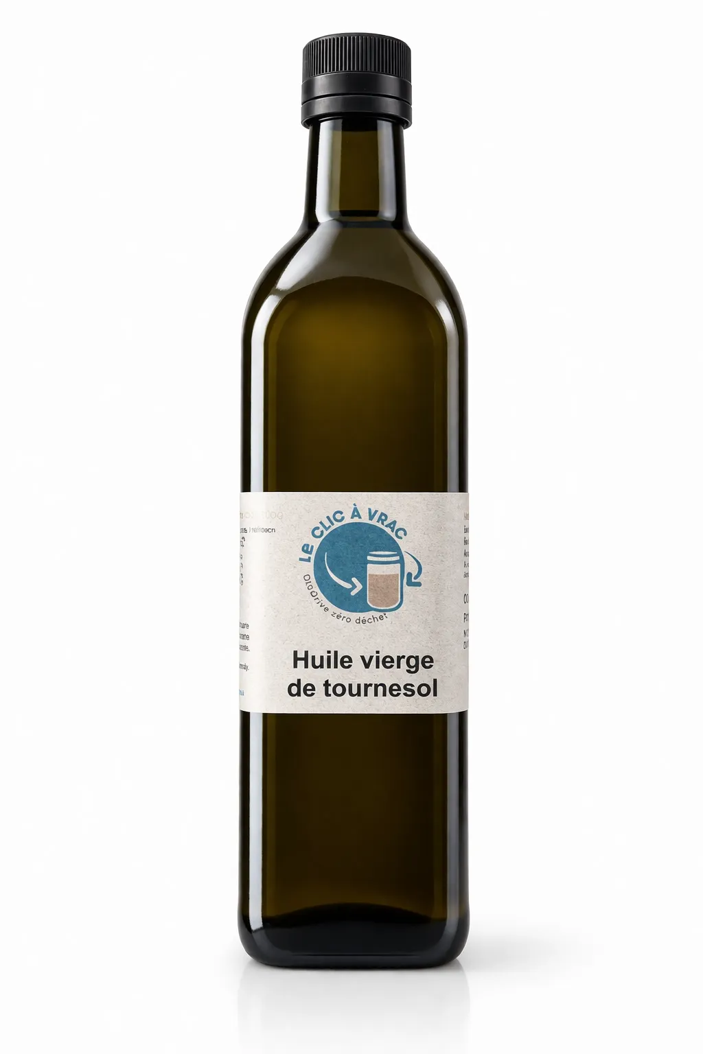 Une huile de tournesol bio et locale parfaite pour la cuisine. C'est notre producteur Benoît qui cultive son tournesol et produit sa propre huile. En plus, elle nous est livrée en bidons, qu'il récupère pour les réutiliser. Encore un acteur local zéro déchet !