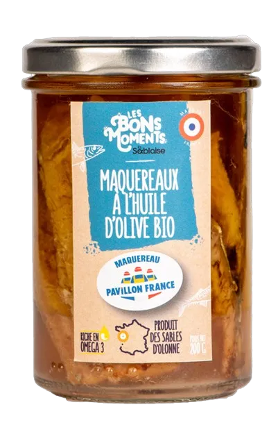 D'excellents maquereaux baignant dans l'huile d'olive Bio.