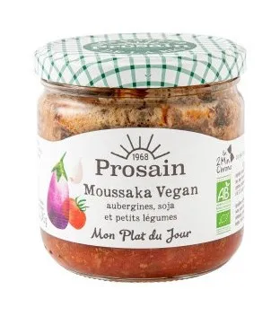 Aubergines* frites 49% (aubergines*, huile de tournesol* désodorisée), pulpe de tomate au jus* 28%, oignon* 5%, eau, crème de soja* 4% (eau, soja* décortiqué, huile de tournesol* désodorisée, émulsifiant : gomme arabique*, sucre de canne* non raffiné, épaississants : gomme xanthane, carraghénanes), protéines de soja* 3%, carotte*, huile d’olive* vierge extra extraite à froid, crème de riz*, sel de mer, épices*, pulpe d’ail*, origan*. *issus de l’agriculture biologique