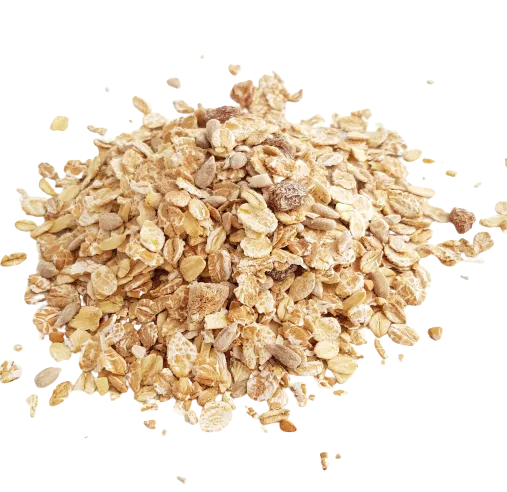 Flocons d’avoine complets* 18%, flocons de blé complets* 18%, flocons de seigle complets* 18%, flocons d’orge complets* 18%, graines de tournesol* 10%, raisins secs* (raisins* 7,9%, huile de tournesol*), figues séchées* (figues* 2,8%, farine de riz*), dattes séchées* (dattes*, farine de riz*), kasha*, amandes toastées* 2%. *Ingrédients issus de l’Agriculture Biologique.