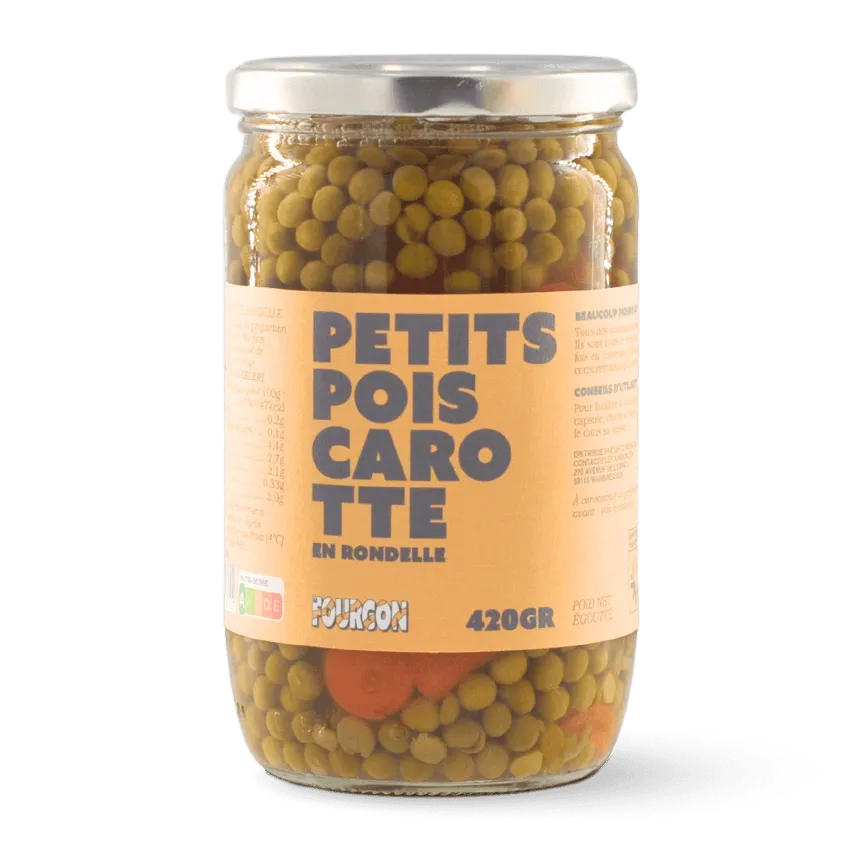 Une conserve prête à l'emploi de petits pois carottes.