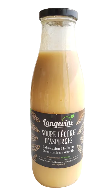 Asperges* 55%, eau, pommes de terre*, sel de guérande. *Issus de l’agriculture biologique.