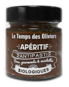 Olives Kalamata* (Grèce) 90% – Huile d’olive Vierge* – Vinaigre de vin rouge* – Ail* – Herbes de Provence* – Sel