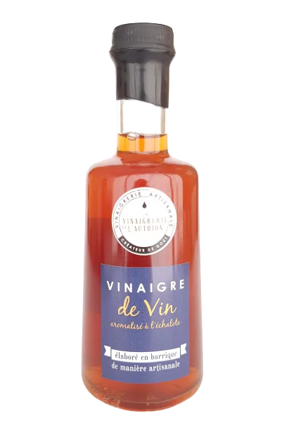Un vinaigre de vin rouge local aromatisé à l'échalote, élaboré de façon artisanale et qui a macéré en barrique afin de préserver la qualité gustative des ingrédients. Vinaigre non pasteurisé et sans colorant.