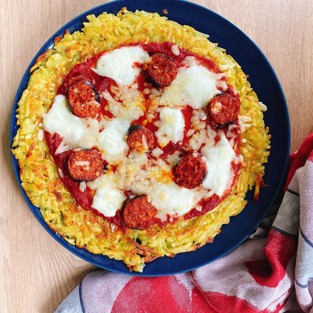 Mettre par dessus de la sauce tomates, des rondelles de chorizo, de la mozzarella et du comté.
