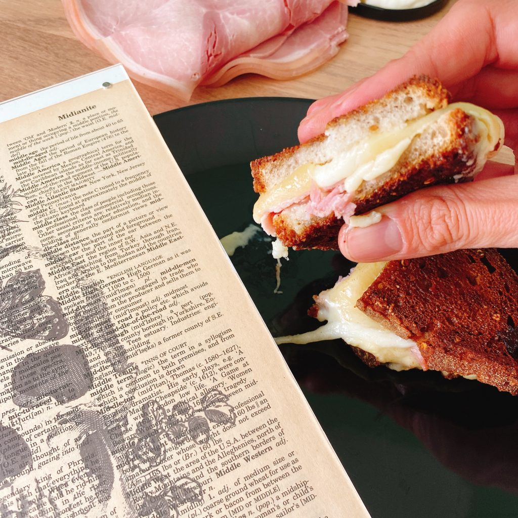 Sur une première tranche de pain, étaler de la béchamel puis déposer une tranche de jambon.
