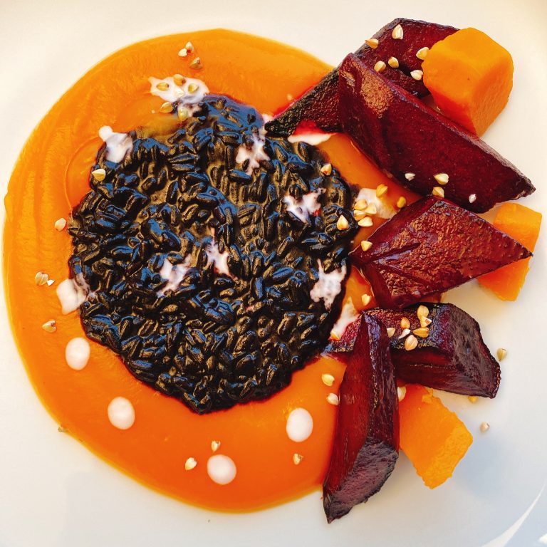 Risotto de riz noir Verone et légumes en 2 textures- en plat VEGAN