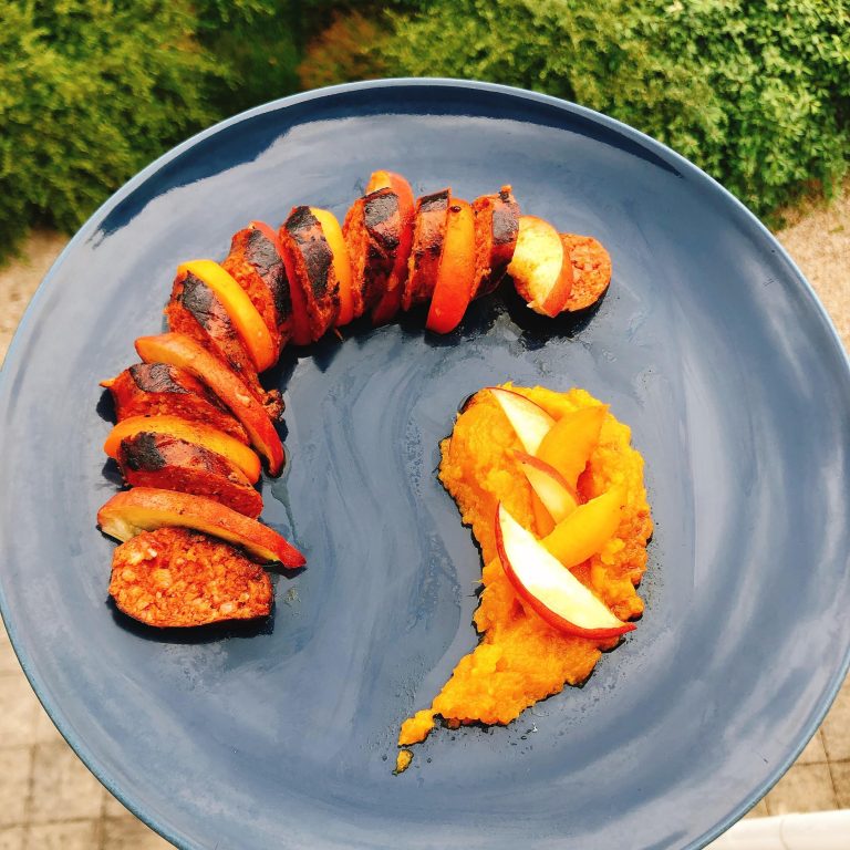 Eplucher la patate douce, cuire à l’eau et mixer avec du beurre et de la crème.